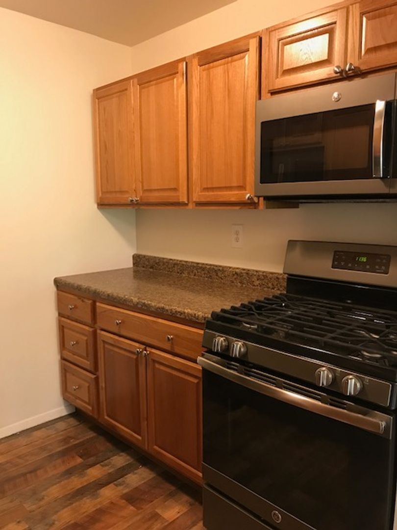 Beautiful ground floor 1 bedroom apartment in a Smoke-Free building! This unit has beautiful oak cabinetry in kitchen and bathroom, wall to wall carpet, top of the line black appliances including a dishwasher, modern light fixtures, and a USB outlets in the bedroom and living room.